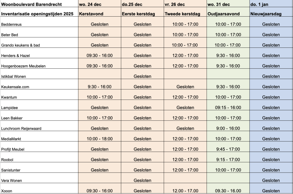 Een aantal winkels hanteren aangepaste openingstijden voor de aankomende feestdagen. Voor de meeste actuele tijden kunt u het beste contact opnemen met de desbetreffende winkel.